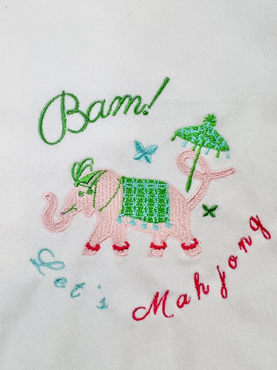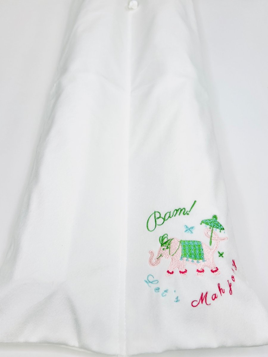 Our brand-new embroidery rack bag was designed with Mahjong Queens in mind. With four roomy compartments, it keeps each wooden rack snug, separated, and scratch-free. No more clinking, no more clutter... just a chic little home for your racks that looks as fabulous as it functions!